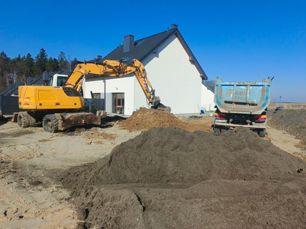 • niwelacja terenu i wykopy pod fundamenty, przyłącza czy ogrody,